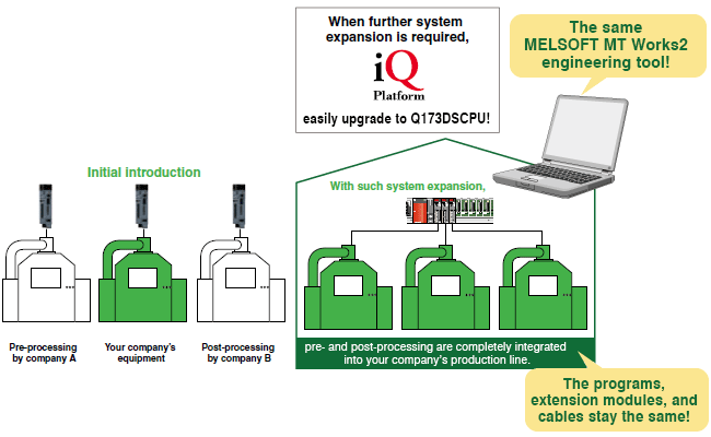 For example, a machine built with the Q170MSCPU can be extended quite easily.