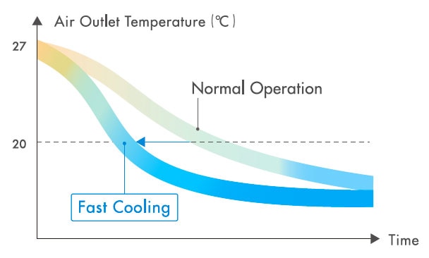 Lowers the air outlet temperature faster than Inverter Normal Cooling.