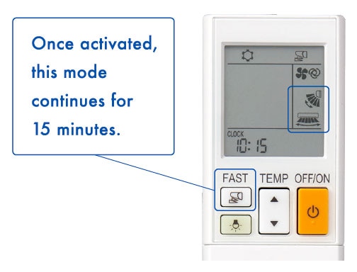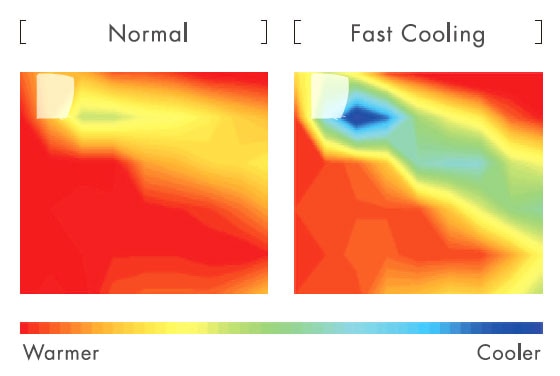 ( in 2 min. after FAST COOLING mode ) Quickly cools a target area with high-volume, low-temperature airblow.
