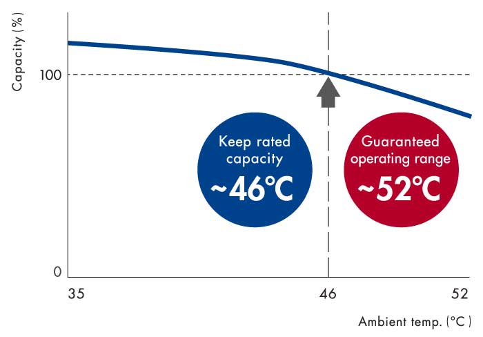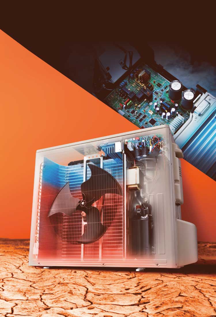 Proper operation is ensured at outdoor temperatures up to 52°C with the optimized heat exchanger and the PCBʼs improved cooling Performance. Even under harsh tropical conditions*, this unit can maintain its rated cooling capacity and achieve comfortable air conditioning.