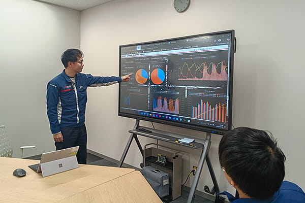 Kibita:I value measuring from the customers’ perspective rather than just measuring electricity data. That means I focus on why customers measure, what data to collect, and how to analyze it so that it can effectively benefit manufacturing sites. I am currently working on energy-efficiency support, which is socially important but whose necessity is not yet widely recognized on the production floor. Therefore, I visit customers’ manufacturing sites in person to hear their real feedback and develop products with a focus on what on-site personnel actually need.