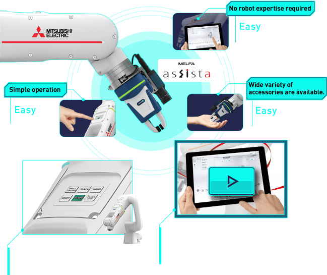“ASSISTA” is a collaborative robot that works with and side by side with people. It has easy operation with on-device buttons and a highly visual and intuitive programming software.