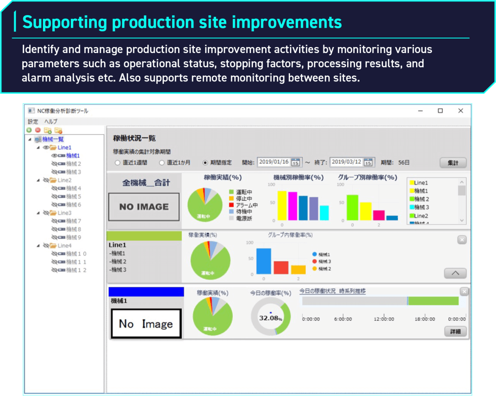 The software collects operational data from NC machine tools and peripherals in the factory. It can then be used to support productivity improvements.
