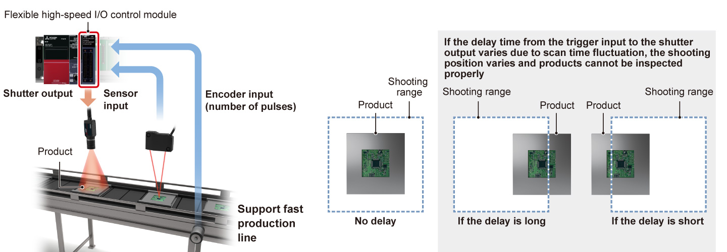 The module includes features such as the ability to program control logic and microsecond-fast asynchronous I/O response times to the programmable controller CPU module and control bus. Ideal for product testing equipment which needs to capture products moving at high-speed.