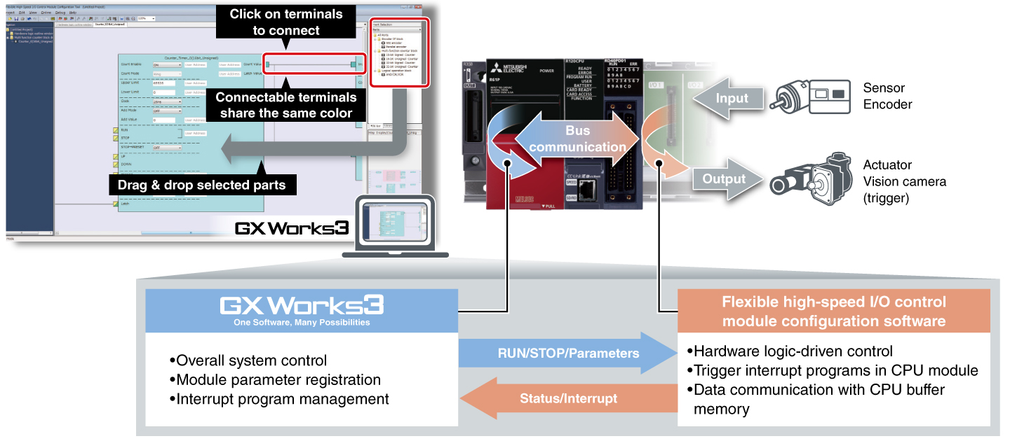 - Hardware logic can be programmed easily using the setting tool integrated with engineering software GX Works3
