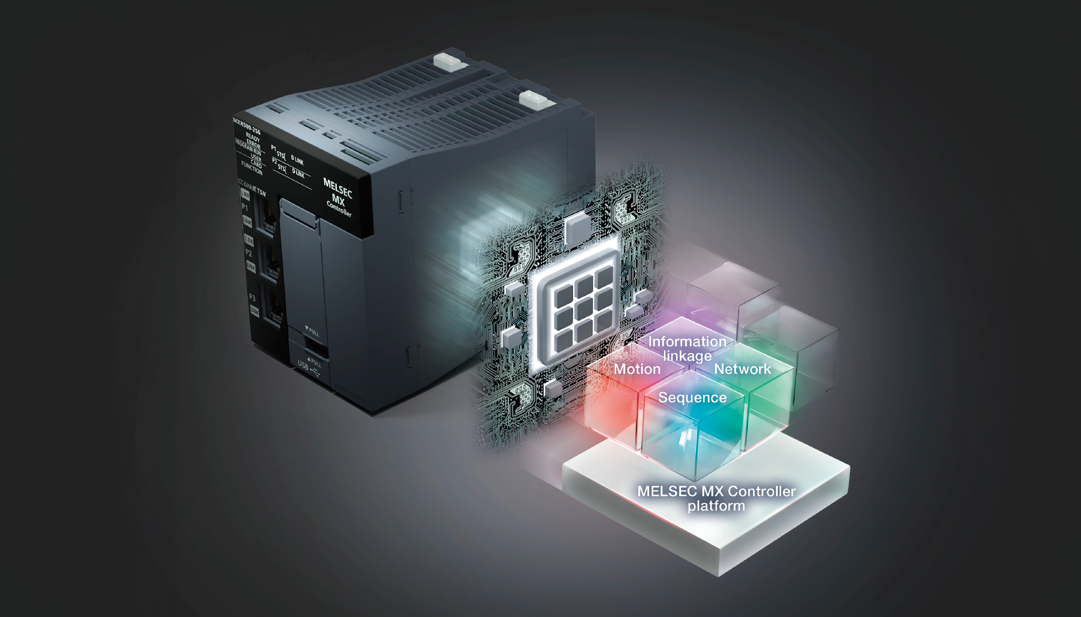 Pengendali MELSEC MX mengintegrasikan tiga jenis kontrol: urutan, gerak, dan jaringan.