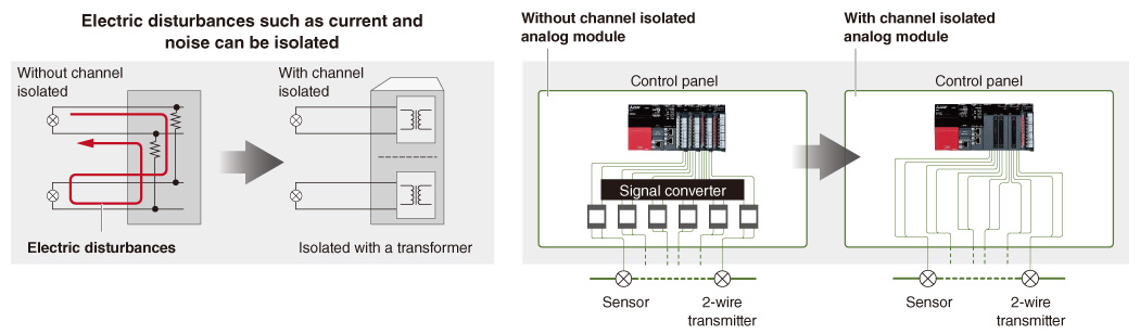 Dalam sistem kontrol proses, isolasi galvanik antar saluran input dan output analog diperlukan untuk mencegah interferensi arus dan kebisingan. Karena jumlah input dan output analog yang besar, perlu untuk mengurangi harga modul per saluran. Modul I/O analog 16-saluran, yang mendukung bentuk konektor yang sama dengan yang 8-saluran, memungkinkan konstruksi sistem dengan biaya rendah.