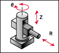 Definicja | Robot cylindryczny wyposażony jest w ramię, które posiada przynajmniej jedno złącze obrotowe i jedno złącze liniowe ułożone według współrzędnych cylindrycznych. |