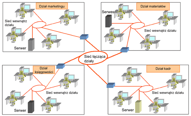 - Przykładowe konfiguracje sieci informacyjnych przedstawiono poniżej.