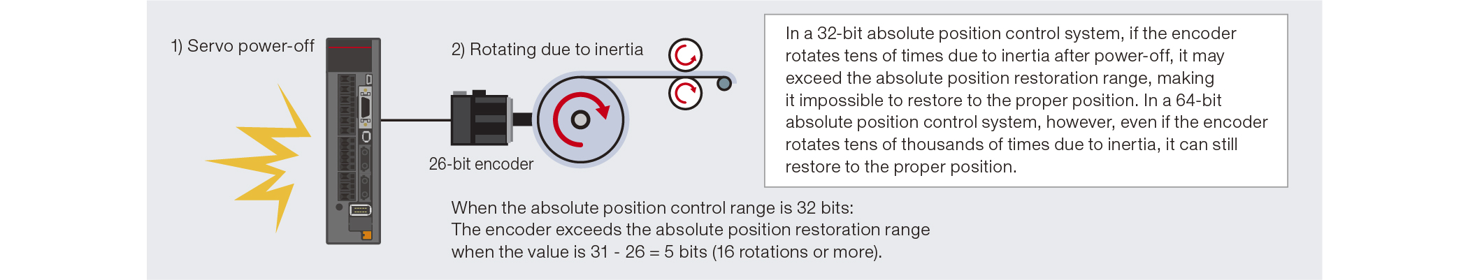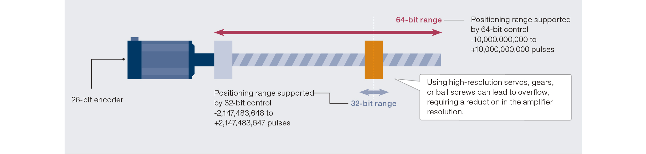 Compared to 32-bit control, 64-bit control offers a broader positioning range while maintaining high resolution.