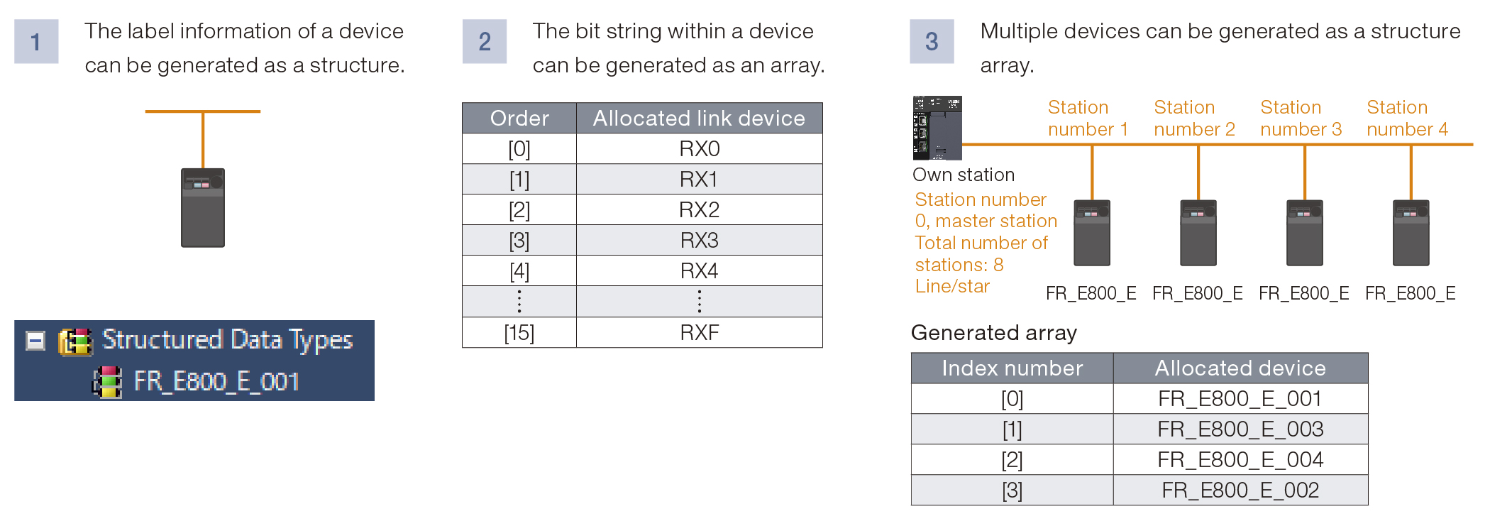 The label information (network labels) of devices can be used as bit arrays, structures, and structure arrays, so that programming efficiency can be improved.