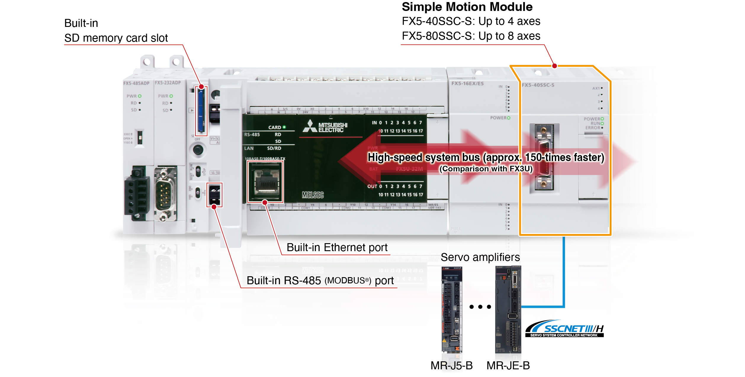 - Synchronous communications are achieved with SSCNETIII/H, offering technical advantages for machines that require deterministic control.
