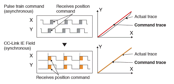 - Achieve synchronous control and cam control by using input pulses from a synchronous encoder or virtual servo amplifier.
