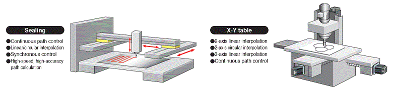 - To respond to various applications, a machine can be controlled by various control methods such as linear interpolation control, 2-axis circular interpolation control, fixed-pitch feed control, and continuous path control.