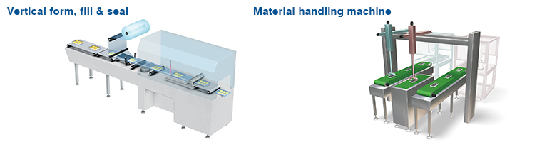 Synchronous control and interpolation functions are achieved with the synchronized communication of CC-Link IE Field Network, being applied to machines which need synchronous control such as food machineries and processing machines.