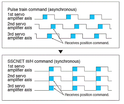 - Synchronous communications are achieved with SSCNETIII/H, offering technical advantages for machines that require deterministic control.