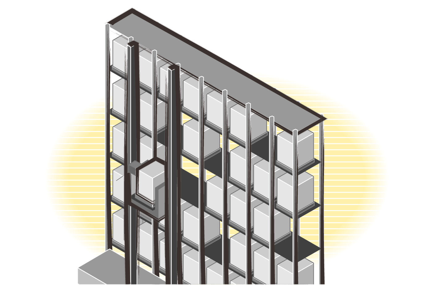 Advanced magnetic flux vector control is ideal for a lift in an automated-storage system which requires high torque at low speed.