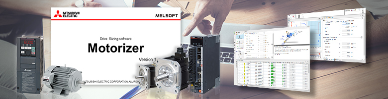 Drive System Sizing Software Motorizer is software that enables you to select the most suitable servo motors for your machine just by setting the machine configuration/specifications and the operation patterns. This software offers a wide range of selectable drive options including sensorless servo and inverters in addition to AC servo.