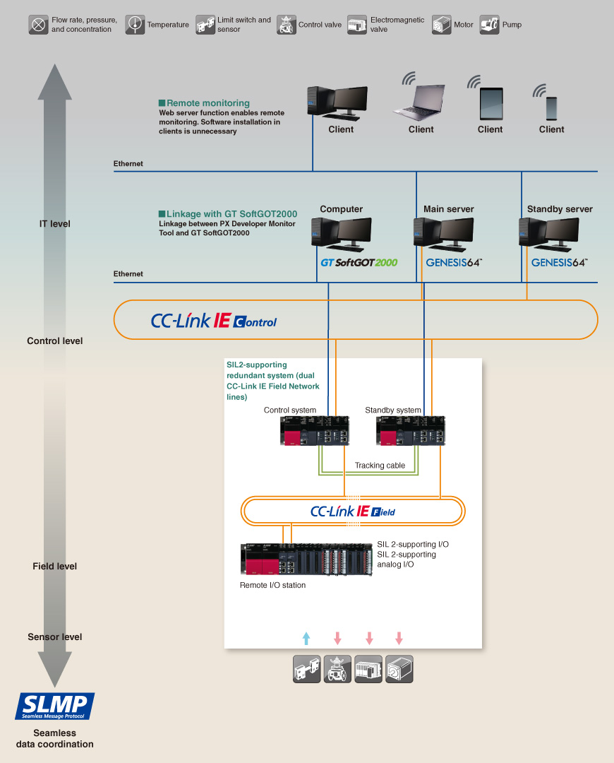 SIL 2-supporting redundant system (dual CC-Link IE Field Network lines)