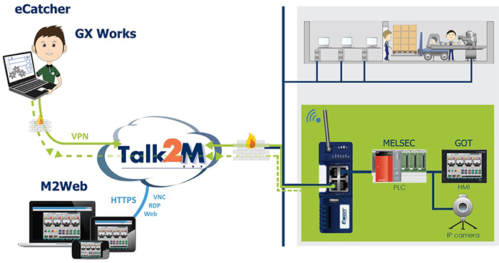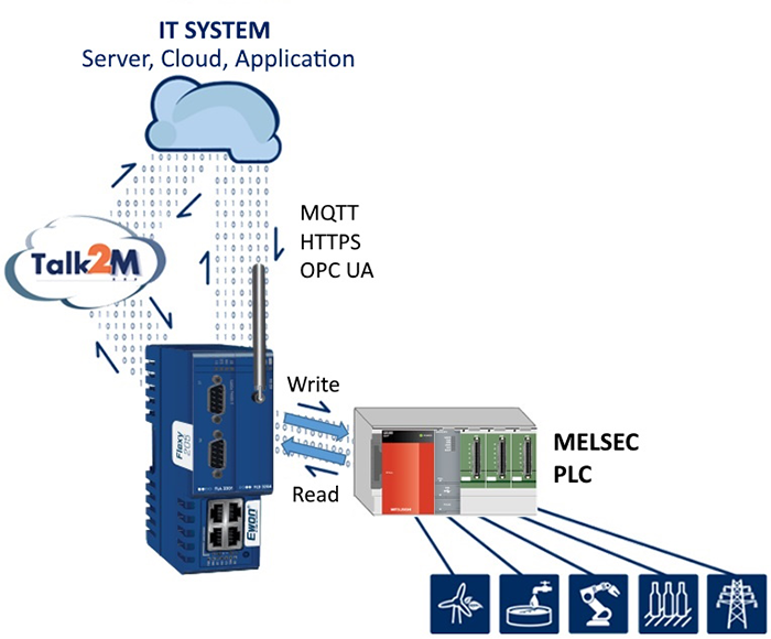 With embedded SLMP and MC Protocol connectivity, the Flexy 205 allows data collection from MELSEC PLCs easily. Data can then be used for trend analysis, logging, alarms, building local dashboards, or send to factory business intelligence software, MES, or ERP systems via OPC UA. Data never leaves the factory floor, unless user wants it to be. The gateway can connect securely to Talk2M, our secure industrial cloud, or any Private or Public Cloud. The requests from the Flexy 205 gateways are executed via MQTT or HTTPS protocols, standards widely deployed in the IT industries. Find out more from https://www.ewon.biz/products/ewon-flexy ![]()