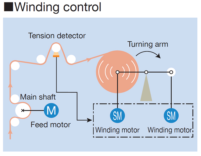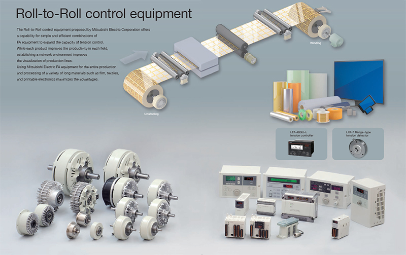 The Roll-to-Roll control equipment proposed by Mitsubishi Electric Corporation offers a capability for simple and efficient combination of FA equipment to expand the capacity of tension control.