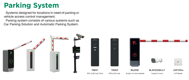 Systems designed for locations in need of parking or vehicle access control management. Parking system consists of various systems such as Car Parking Solution and Automatic Parking System.