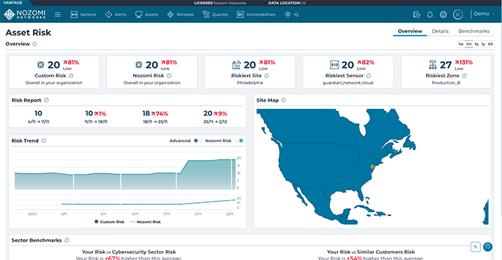 Nozomi Vantage is a cloud management platform that unifies security monitoring and risk management across Guardian sensors and Arc endpoints for an unlimited number of OT, IoT, IT, edge and cloud assets across sites, regions, and teams. Through a single pane of glass, Vantage powers asset management, vulnerability assessment, and threat detection and response.