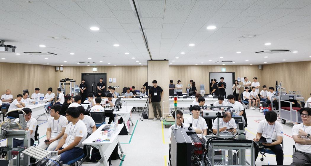 It was early in the morning of August 7th 2025, at the Digital Transformation Hub in Gyeonggi TechnoPark, and participants were busy at work, skillfully operating PLCs and monitors at their desks. This was the site of the 2025 MECA KOREA CUP, where participants work with factory automation (FA) devices and software to develop smart factory models.