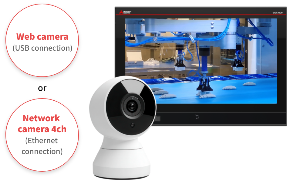* For the recording and playback function or displaying footage from a network camera, a separate multimedia function license (GT30-MMRKEYA1) is required.