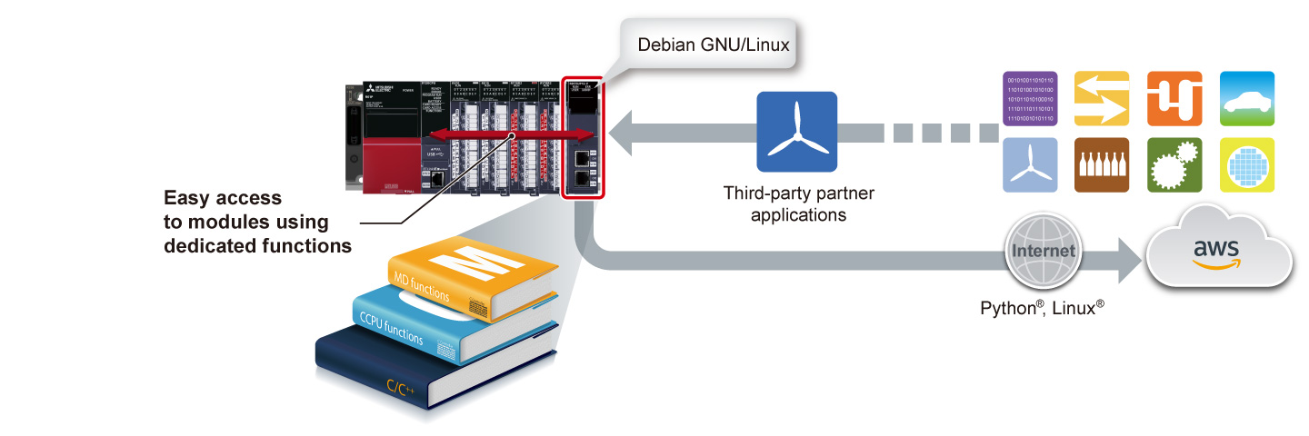 - The C intelligent function module utilizes Debian GNU/Linux allowing machines to utilize the latest data processing technology developed by the community, helping to reduce development time