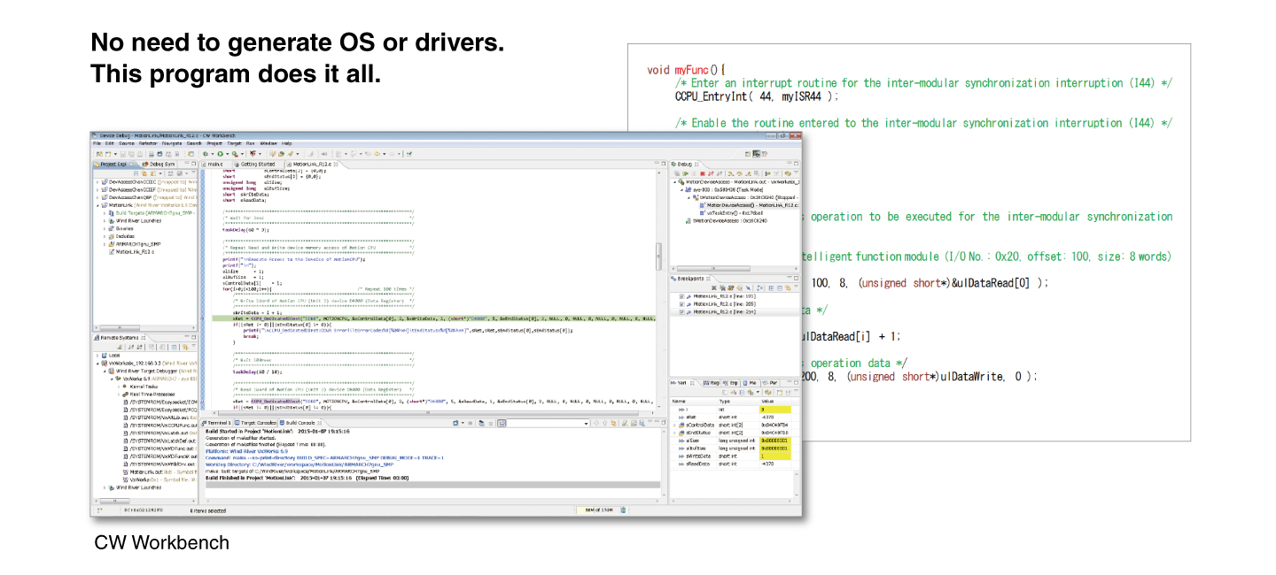 Embedded with VxWorks ® , the C Controller realizes real-time control which may not be possible with a general-purpose OS. -