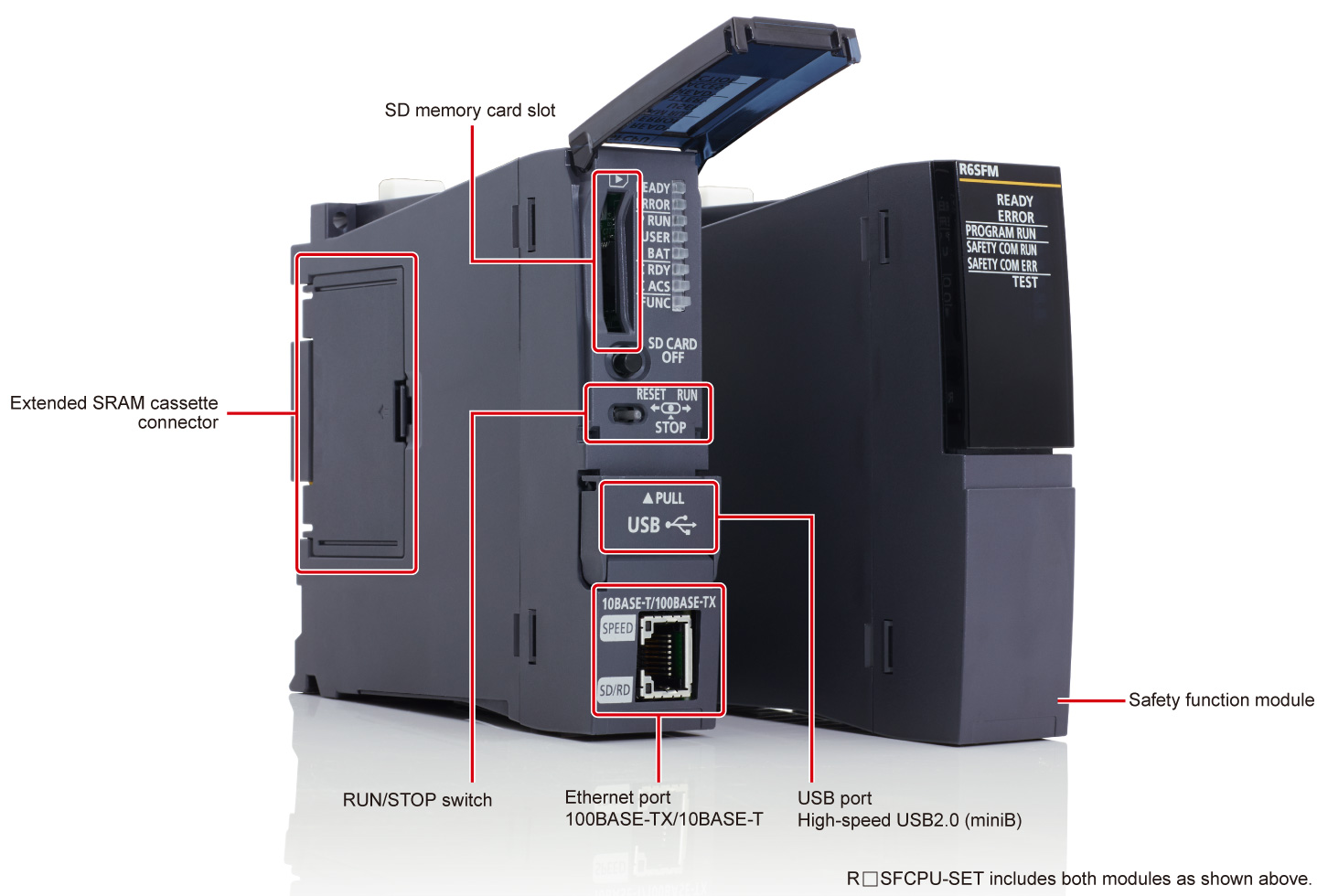 - *2. Product package includes a safety CPU module (R□SFCPU) and safety function module (R6SFM).