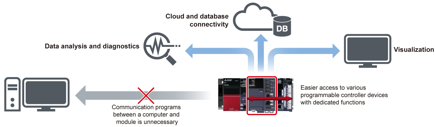- The module, which is incorporated into the multiple CPU configuration, can easily add functions utilizing Windows ® to the existing equipment