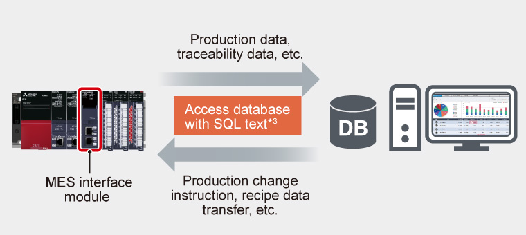 A cycle of collecting and analyzing production data for improvement is necessary to achieve “operating ratio improvement by preventive maintenance”, “high-speed equipment and production lines”, “traceability”, and “energy saving. Advanced information modules enable data communication with the IT system and programmable controllers, realizing coordination between the IT system and the shop floor.