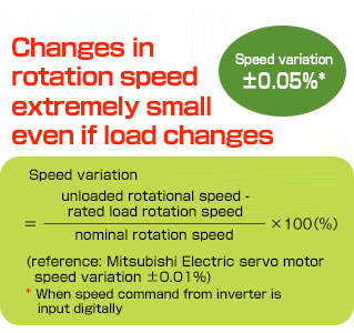 • This product combines an S-PM motor (permanent magnet motor) with Mitsubishi Electric's unique sensorless vector controller to achieve high-precision speed control.