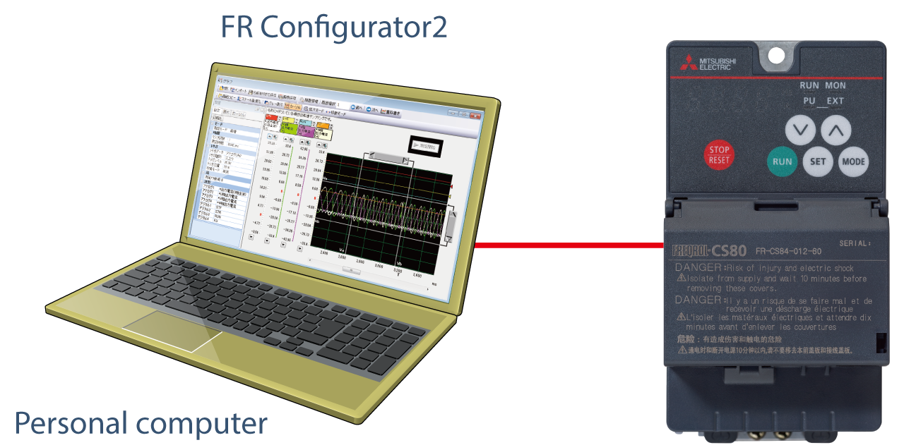 Using a controller, the inverter can be controlled and monitored via network. The standard model with an RS-485 interface (Mitsubishi inverter protocol, MODBUS RTU protocol) enables communication with the speed of up to 115.2 kbps.