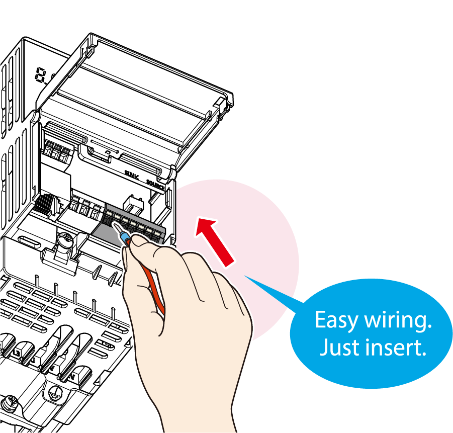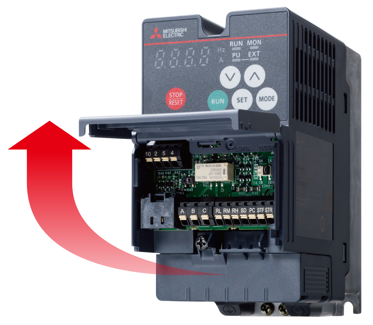 The wiring can be checked only by lifting the control terminal cover, which makes maintenance work easier.