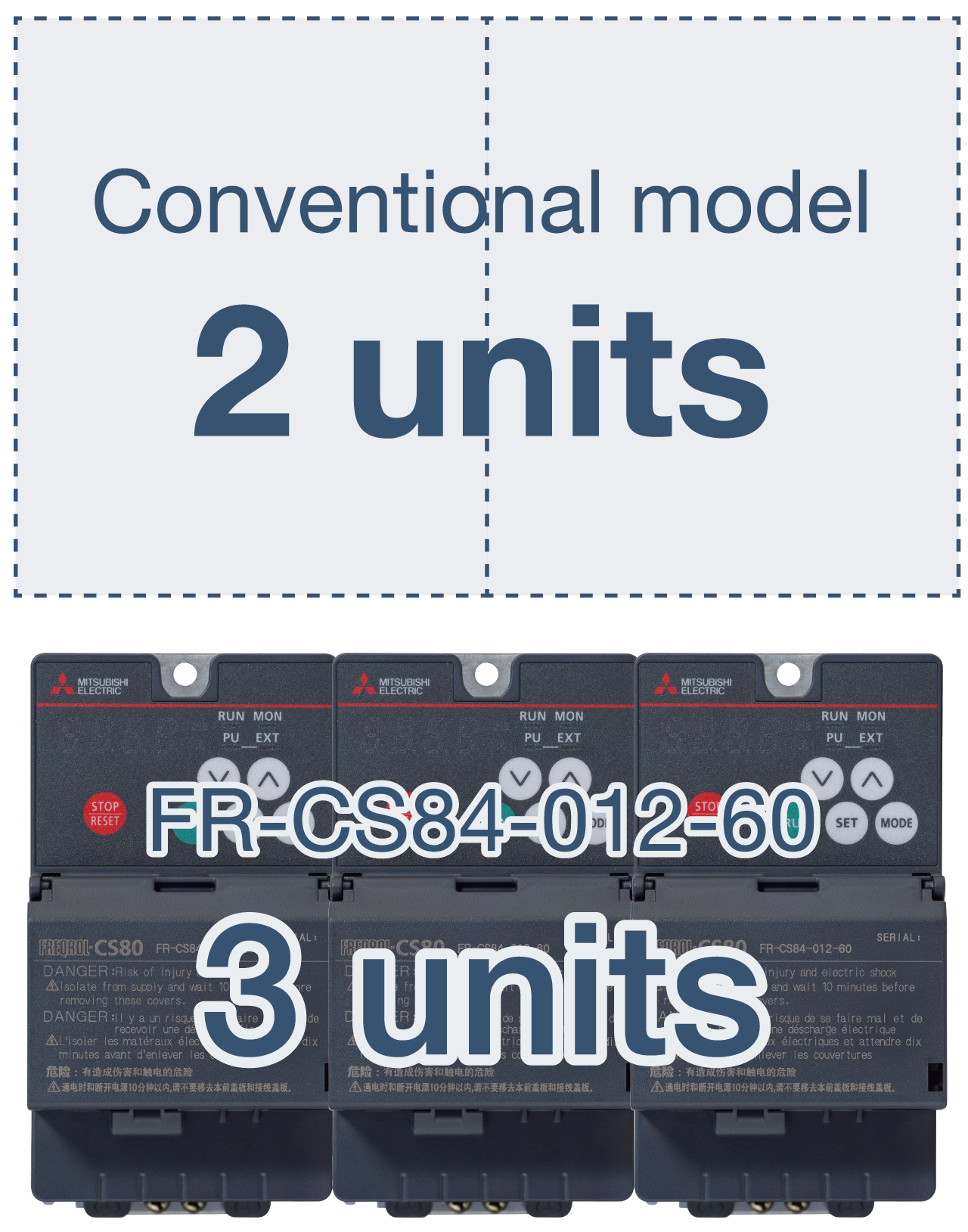 . Three FR-CS84-012-60 inverters can be installed in space for two