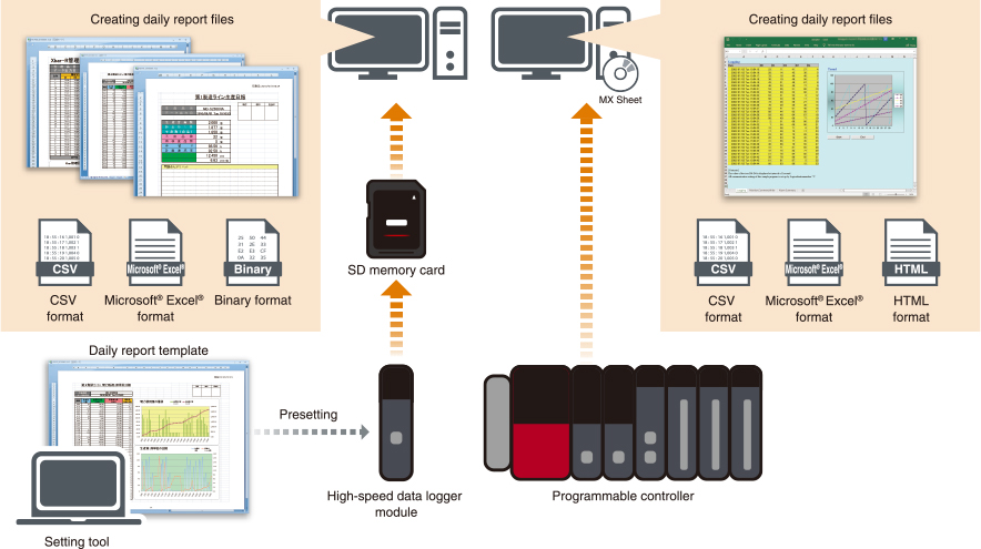 Creates daily reports by importing the logging data to off-the-shelf software such as Excel®.