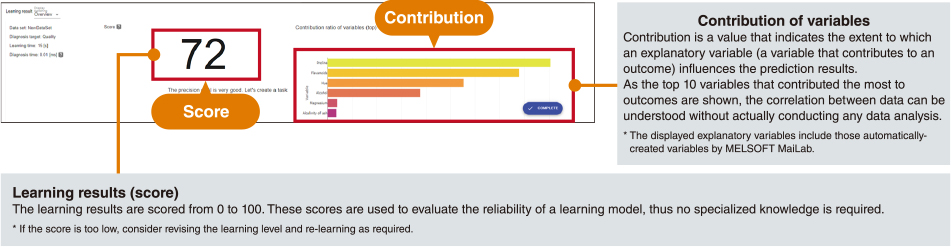 Use MELSOFT MaiLab to automatically execute everything from pre-processing of data and selection of analysis method to creation of learning models.