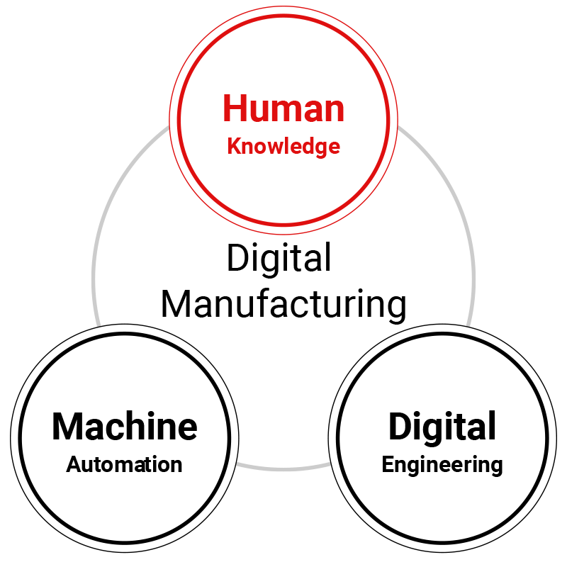 To solve the highly complicated and diverse issues of digital manufacturing as simply as possible, not only are latest technologies such as machine automation and digital engineering needed, “human knowledge” is also indispensable.