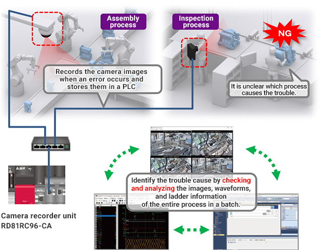 - Identify the trouble cause by checking and analyzing the images, waveforms, and ladder information of the entire process in a batch.