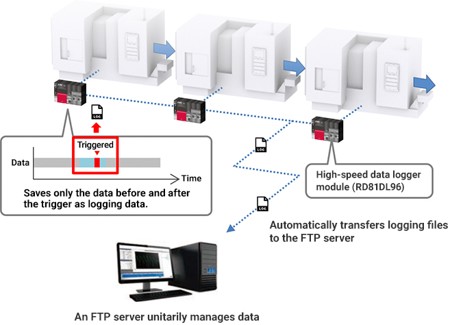 - The high-speed data logger module logs various data in the production process and realizes traceability of the production site by changing settings without stopping the equipment.