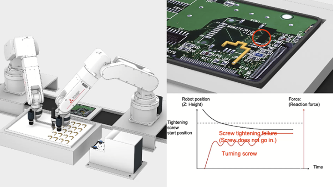 - Force sensors detect positioning error and control the pressing force during screw tightening.