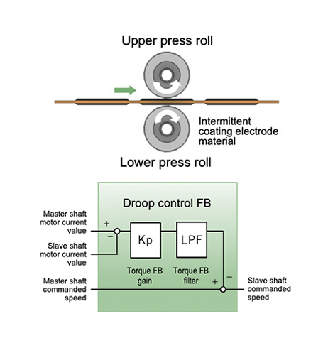 - Dedicated droop control FB for roll presses performs correction of slave rolls to counter torque deviations due to differences in circumferential speeds of top and bottom rolls.