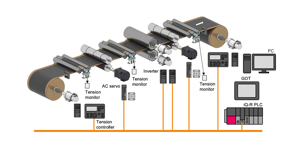 - Stable high-accuracy tension control can be easily achieved using tension controllers. It can support torque control of powder clutches/brakes, AC servos, and vector inverters.