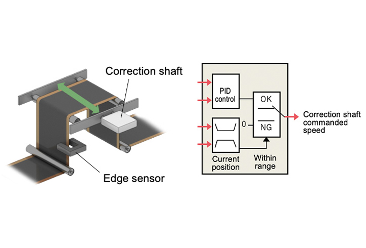 - Meander correction control FB enables easy realization of meander correction in various processes such as winding, unwinding, and in between.