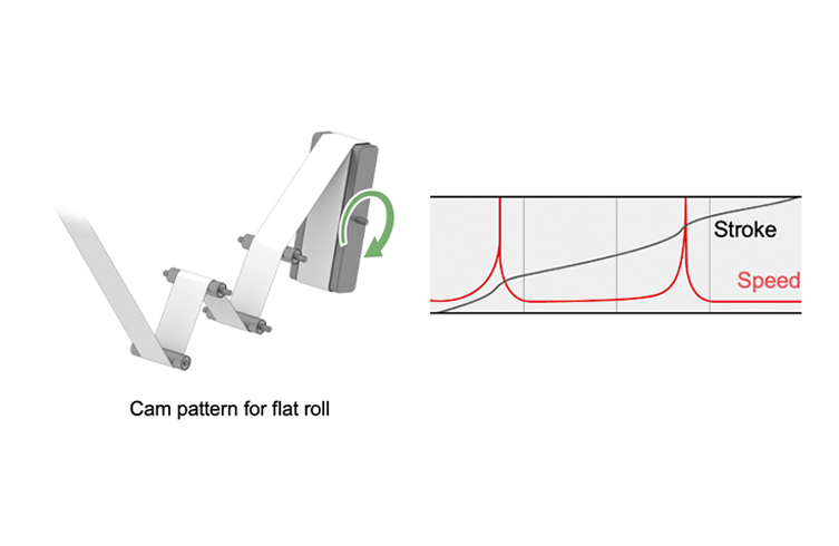 - Use teaching to automatically generate correction cam table for matching winding rotation speed to material feed rate.