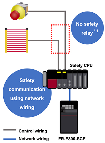 - *1: By using a safety programmable controller, safety control and safety communication functions of the safety relay are integrated into the control system.