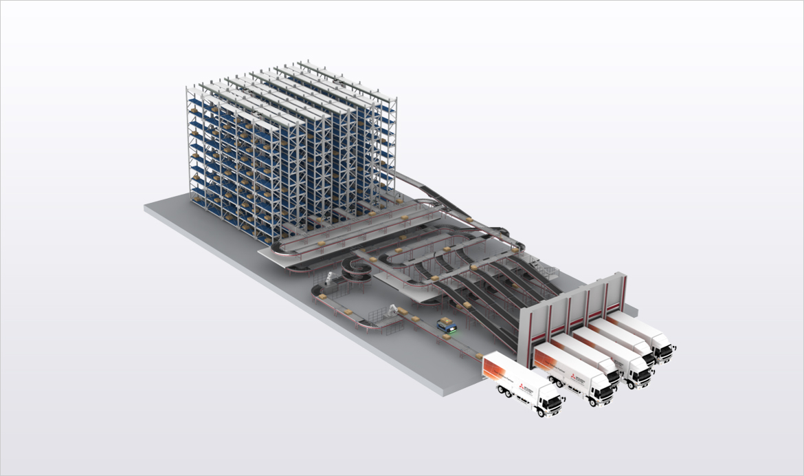 The focus of attention is increasing on logistics reform as supply chain management. To improve the issues such as inbound/outbound time in warehouse, sorting efficiency and overall equipment costs, Mitsubishi Electric FA provides total solutions for stacker cranes and other logistics equipment and contributes to building efficient and safe logistics systems.